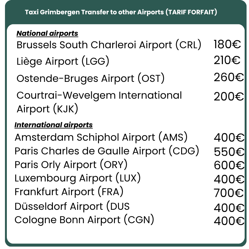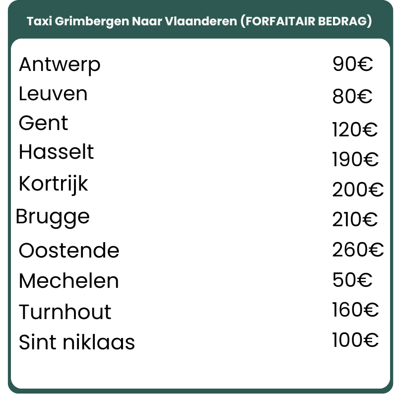 Onze forfaitaire tarieven zijn berekend vanaf het stadscentrum van de vermelde bestemming.